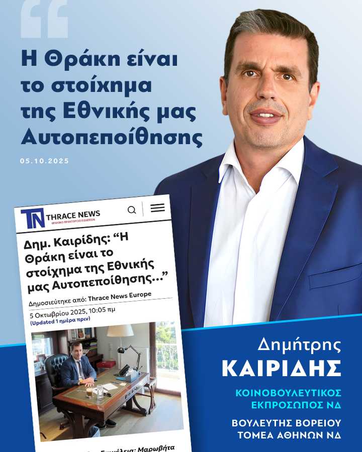 Από την Καβάλα της παιδικής του ηλικίας έως το Υπουργείο Μετανάστευσης και τις αίθουσες διδασκαλίας της Βοστώνης, ο Δημήτρης Καιρίδης βλέπει τη Θράκη όχι ως πρόβλημα, αλλά ως ευκαιρία. Μια περιοχή που μπορεί να μετατραπεί από «ακριτικό περιθώριο» σε γέφυρα γεωπολιτικής ισχύος, οικονομικής ανάπτυξης και δημοκρατικής συνύπαρξης. Με λόγο νηφάλιο, αλλά σαφή, αναδεικνύει τις παθογένειες του παρελθόντος — από την καχυποψία και την ημιμάθεια έως την κακοδιαχείριση αναπτυξιακών κινήτρων — και καλεί σε μια νέα προσέγγιση που συνδέει την ευημερία των πολιτών με την εθνική ασφάλεια.