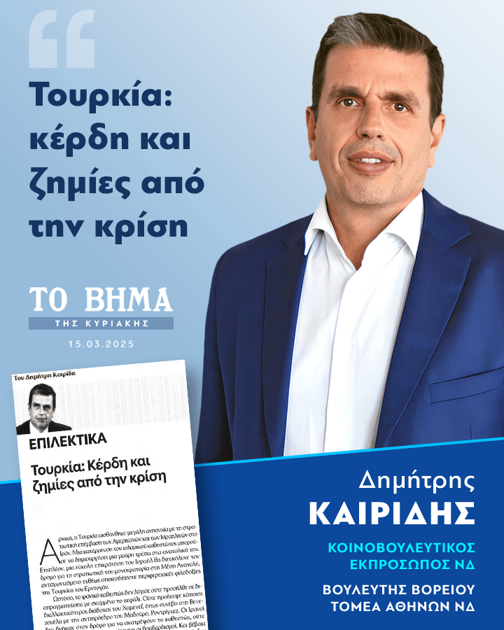 Άρθρο του Δημήτρη Καιρίδη στην εφημερίδα «ΤΟ ΒΗΜΑ ΤΗΣ ΚΥΡΙΑΚΗΣ» της 15ης Μαρτίου, 2026